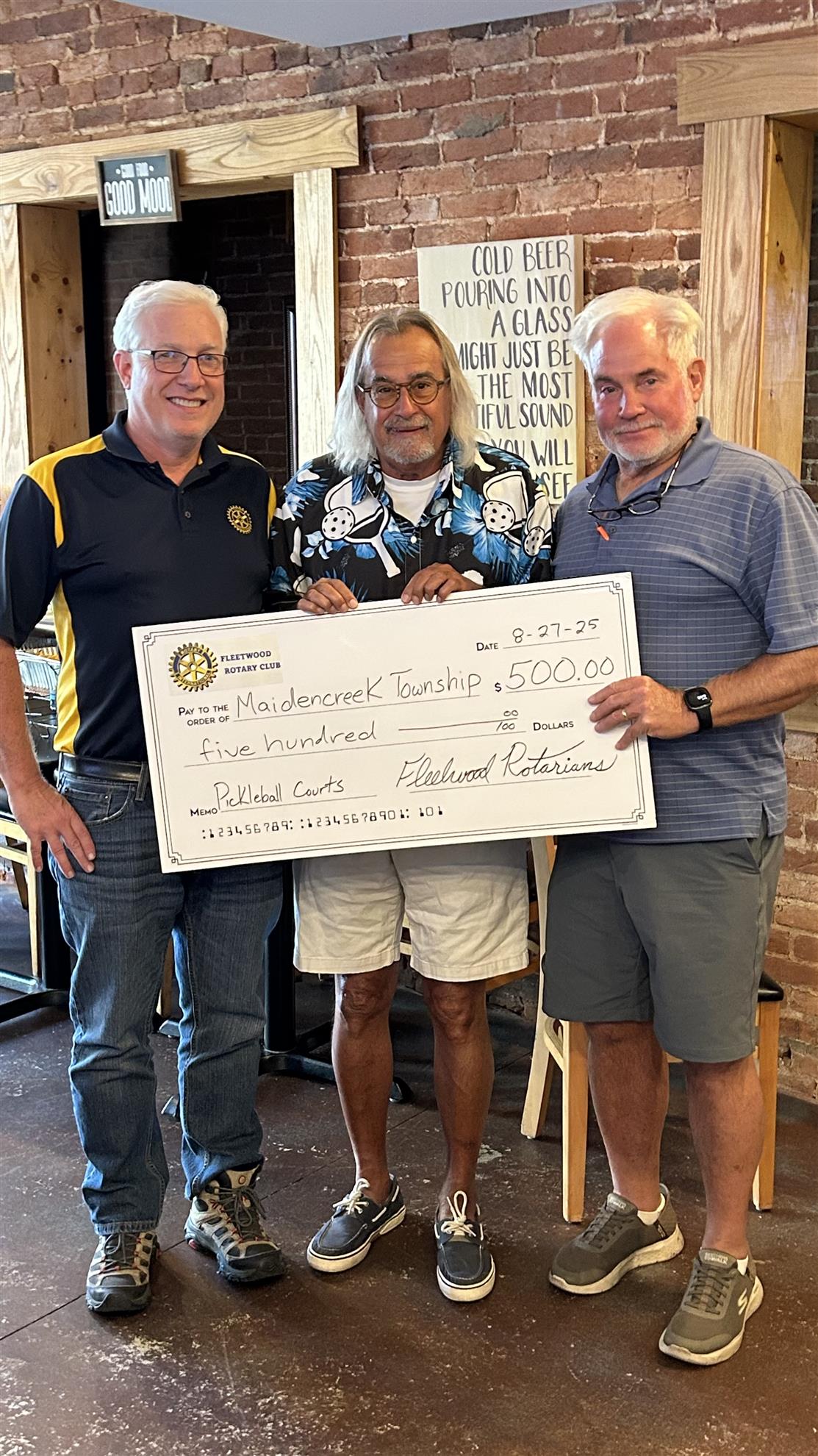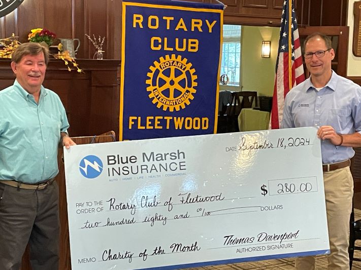 Welcome to the Rotary Club of Fleetwood- and more importantly, welcome to Rotary! This is a place where your ideas, enthusiasm, and energy are not only valued but essential. Rotary International is a global organization of 1.4 million members and more than 46,000 clubs in over 200 countries. Together, we work to promote peace, fight disease, provide clean water and sanitation, save mothers and children, support education, grow local economies, and protect our environment. Here in Fleetwood, our club champions youth development through initiatives like our Scholarship program, Student of the Month recognition, Camp Neidig leadership experience, the Four-Way Test Speech Contest, and International Student Exchange opportunities. We take our mission of Service above Self seriously - but we also know how to have fun along the way. Fellowship, laughter, and community connection are a big part of what makes our club special. We invite you to learn more about the Fleetwood Rotary Club and Rotary International - and we hope you'll consider joining us on this meaningful and rewarding journey.